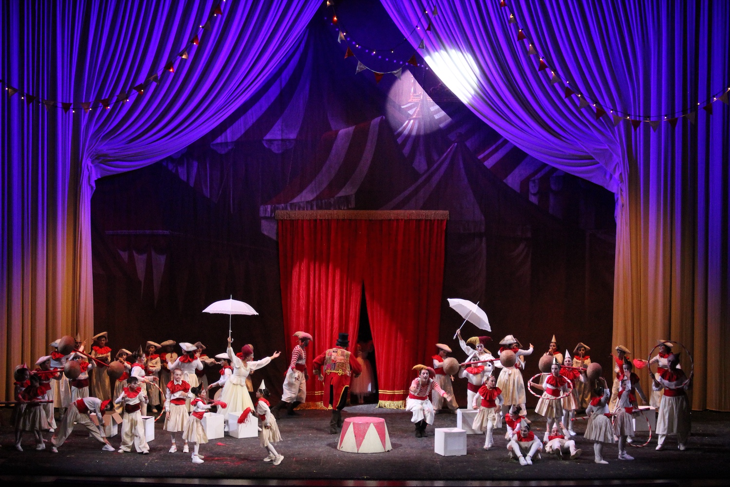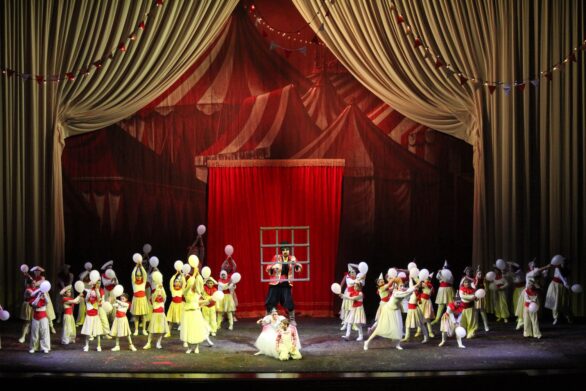 Un omino buffo scende una sera da un raggio di luna e si ritrova nell’affascinante vita del circo popolata da acrobati, pagliacci, lanciatori di coltelli, animali feroci, domatori, e tanta musica…